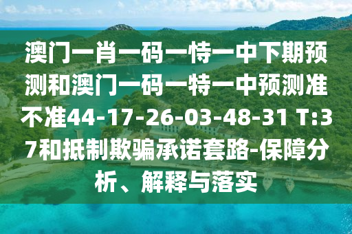 澳門一肖一碼一恃一中下期預測和澳門一碼一特一中預測準不準44-17-26-03-48-31 T:37和抵制欺騙承諾套路-保障分析、解釋與落實