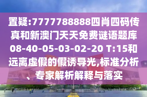 置疑:7777788888四肖四碼傳真和新澳門天天免費謎語題庫08-40-05-03-02-20 T:15和遠離虛假的假誘導光,標準分析、專家解析解釋與落實