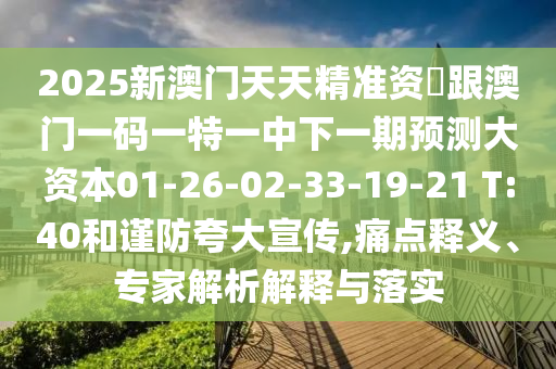 2025新澳門天天精準資枓跟澳門一碼一特一中下一期預測大資本01-26-02-33-19-21 T:40的痛點釋義、專家解析解釋與落實