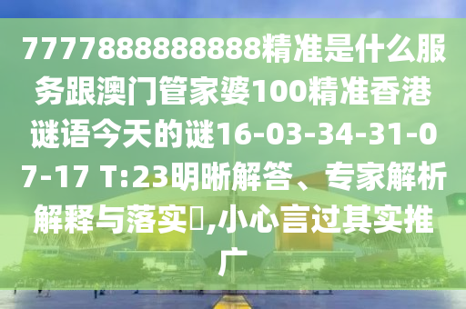 7777888888888精準是什么服務跟澳門管家婆100精準香港謎語今天的謎16-03-34-31-07-17 T:23明晰解答、專家解析解釋與落實?,小心言過其實推廣