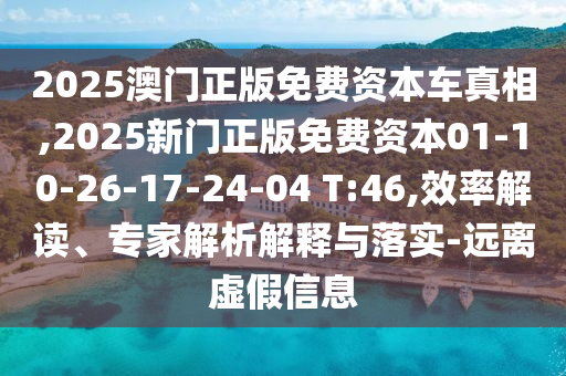 2025澳門正版免費資本車真相,2025新門正版免費資本01-10-26-17-24-04 T:46,效率解讀、專家解析解釋與落實-遠離虛假信息