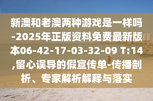 新澳和老澳兩種游戲是一樣嗎-2025年正版資料免費最新版本06-42-17-03-32-09 T:14:傳播剖析、專家解析解釋與落實