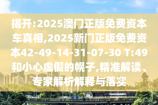 揭開:2025澳門正版免費資本車真相,2025新門正版免費資本42-49-14-31-07-30 T:49和小心虛假的幌子,精準解讀、專家解析解釋與落實
