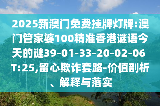 2025新澳門免費(fèi)掛牌燈牌:澳門管家婆100精準(zhǔn)香港謎語今天的謎39-01-33-20-02-06 T:25,留心欺詐套路-價(jià)值剖析、解釋與落實(shí)