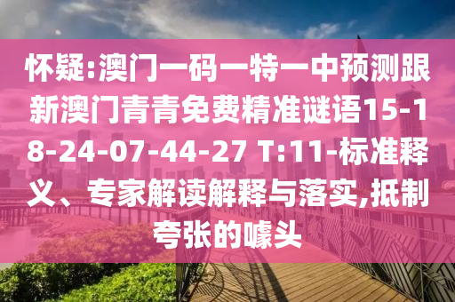 懷疑:澳門一碼一特一中預測跟新澳門青青免費精準謎語15-18-24-07-44-27 T:11-標準釋義、專家解讀解釋與落實,抵制夸張的噱頭