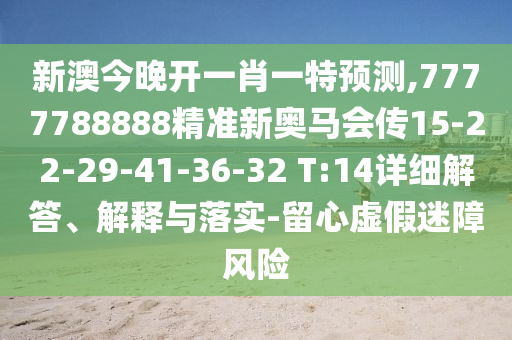 新澳今晚開一肖一特預測,7777788888精準新奧馬會傳15-22-29-41-36-32 T:14詳細解答、解釋與落實-留心虛假迷障風險