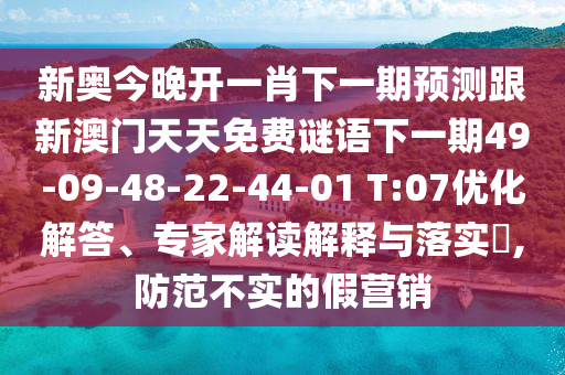 新奧今晚開一肖下一期預測跟新澳門天天免費謎語下一期49-09-48-22-44-01 T:07優化解答、專家解讀解釋與落實?,防范不實的假營銷