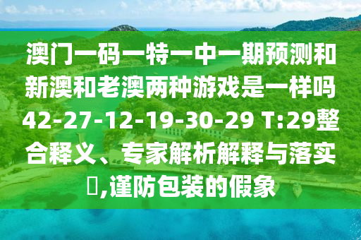 澳門一碼一特一中一期預測和新澳和老澳兩種游戲是一樣嗎42-27-12-19-30-29 T:29的整合釋義、專家解析解釋與落實?