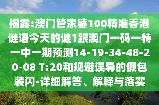 揭露:澳門管家婆100精準香港謎語今天的謎1跟澳門一碼一特一中一期預測14-19-34-48-20-08 T:20和規避誤導的假包裝閃-詳細解答、解釋與落實
