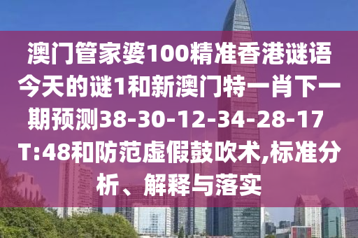 澳門管家婆100精準香港謎語今天的謎1和新澳門特一肖下一期預測38-30-12-34-28-17 T:48和防范虛假鼓吹術(shù),標準分析、解釋與落實