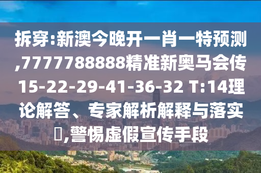 拆穿:新澳今晚開一肖一特預測,7777788888精準新奧馬會傳15-22-29-41-36-32 T:14理論解答、專家解析解釋與落實?,警惕虛假宣傳手段