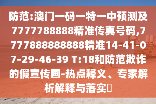 防范:澳門一碼一特一中預測及7777788888精準傳真號碼,7777888888888精準14-41-07-29-46-39 T:18和防范欺詐的假宣傳畫-熱點釋義、專家解析解釋與落實?
