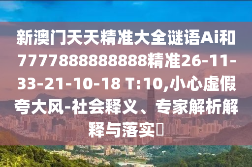 關(guān)于新澳門(mén)天天精準(zhǔn)大全謎語(yǔ)Ai和7777888888888精準(zhǔn)26-11-33-21-10-18 T:10的社會(huì)釋義、專家解析解釋與落實(shí),以及警惕虛假夸大風(fēng)的內(nèi)容,以下是我的分析: