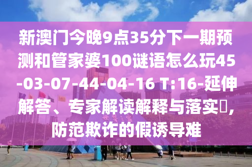 新澳門今晚9點35分下一期預測和管家婆100謎語怎么玩45-03-07-44-04-16 T:16-延伸解答、專家解讀解釋與落實?,防范欺詐的假誘導難
