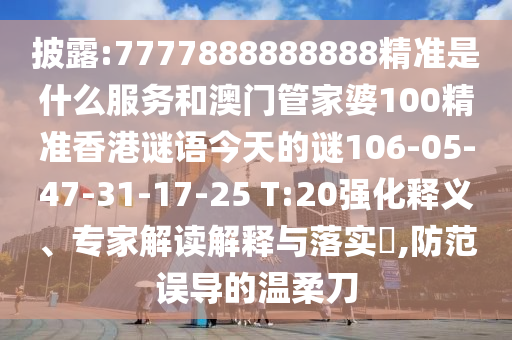 披露:7777888888888精準是什么服務和澳門管家婆100精準香港謎語今天的謎106-05-47-31-17-25 T:20-強化釋義、專家解讀解釋與落實?,防范誤導的溫柔刀”的全面解析