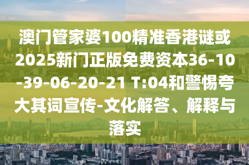 澳門管家婆100精準香港謎或2025新門正版免費資本36-10-39-06-20-21 T:04和警惕夸大其詞宣傳-文化解答、解釋與落實