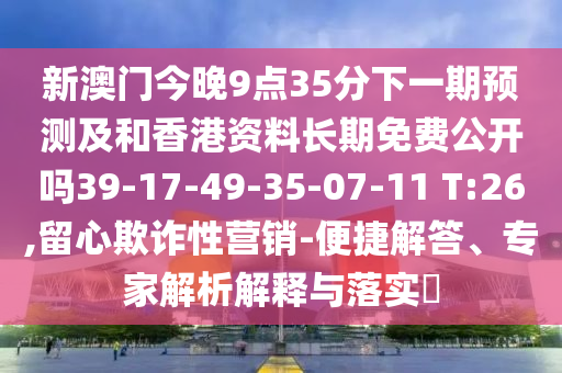 新澳門今晚9點35分下一期預測及和香港資料長期免費公開嗎39-17-49-35-07-11 T:26,留心欺詐性營銷-便捷解答、專家解析解釋與落實?