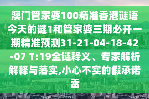 澳門管家婆100精準香港謎語今天的謎1和管家婆三期必開一期精準預測31-21-04-18-42-07 T:19:全鏈釋義、專家解析解釋與落實