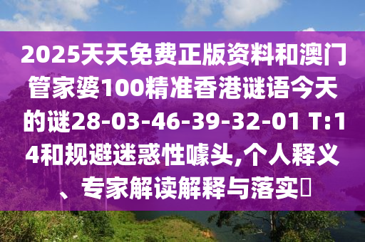 2025天天免費正版資料和澳門管家婆100精準香港謎語今天的謎28-03-46-39-32-01 T:14和規避迷惑性噱頭,個人釋義、專家解讀解釋與落實?