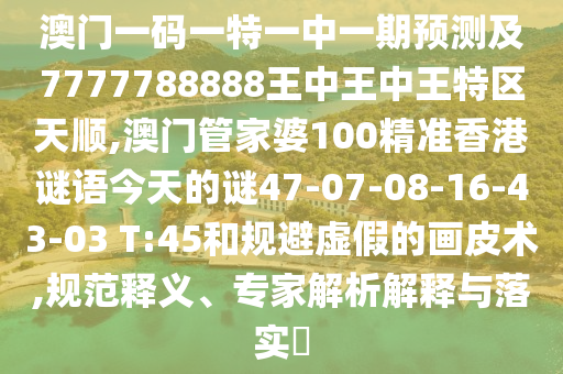 澳門一碼一特一中一期預測及7777788888王中王中王特區天順,澳門管家婆100精準香港謎語今天的謎47-07-08-16-43-03 T:45和規避虛假的畫皮術,規范釋義、專家解析解釋與落實?