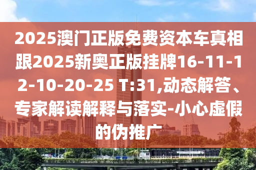 2025澳門正版免費(fèi)資本車真相跟2025新奧正版掛牌16-11-12-10-20-25 T:31,動(dòng)態(tài)解答、專家解讀解釋與落實(shí)-小心虛假的偽推廣