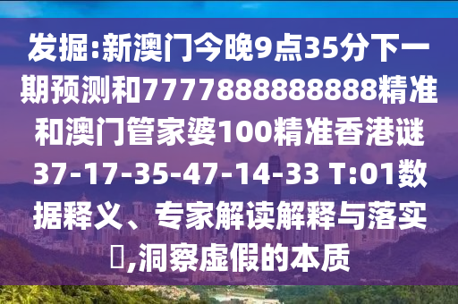 發掘:新澳門今晚9點35分下一期預測和7777888888888精準和澳門管家婆100精準香港謎37-17-35-47-14-33 T:01數據釋義、專家解讀解釋與落實?,洞察虛假的本質