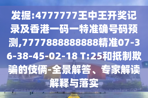 4777777王中王開獎(jiǎng)記錄及香港一碼一特準(zhǔn)確號(hào)碼預(yù)測(cè),7777888888888精準(zhǔn)07-36-38-45-02-18 T:25,抵制欺騙的伎倆”的全景解答、專家解讀與落實(shí)