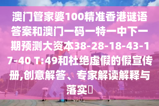 澳門管家婆100精準香港謎語答案和澳門一碼一特一中下一期預測大資本38-28-18-43-17-40 T:49和杜絕虛假的假宣傳冊,創意解答、專家解讀解釋與落實?