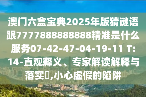 澳門六盒寶典2025年版猜謎語跟7777888888888精準是什么服務07-42-47-04-19-11 T:14:直觀釋義、專家解讀解釋與落實?