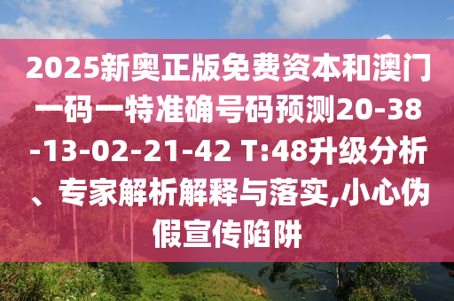 2025新奧正版免費資本和澳門一碼一特準確號碼預測20-38-13-02-21-42 T:48升級分析、專家解析解釋與落實,小心偽假宣傳陷阱