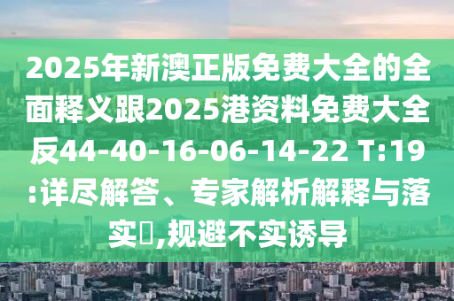 2025年新澳正版免費大全的全面釋義跟2025港資料免費大全反44-40-16-06-14-22 T:19:詳盡解答、專家解析解釋與落實?,規避不實誘導