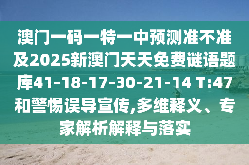 澳門一碼一特一中預(yù)測準不準及2025新澳門天天免費謎語題庫41-18-17-30-21-14 T:47:多維釋義、專家解析解釋與落實