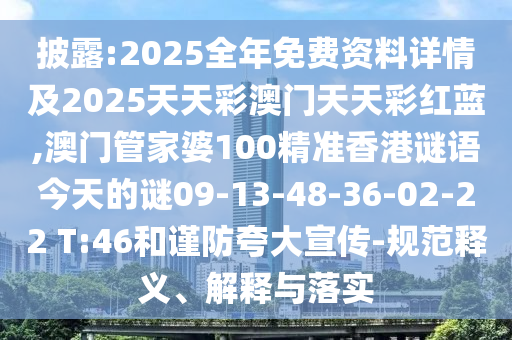 2025全年免費資料詳情及2025天天彩澳門天天彩紅藍,澳門管家婆100精準香港謎語今天的謎09-13-48-36-02-22 T:46:規范釋義、解釋與落實