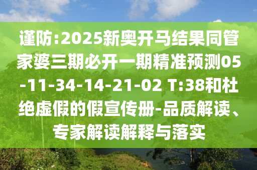 謹(jǐn)防:2025新奧開(kāi)馬結(jié)果同管家婆三期必開(kāi)一期精準(zhǔn)預(yù)測(cè)05-11-34-14-21-02 T:38和杜絕虛假的假宣傳冊(cè)-品質(zhì)解讀、專家解讀解釋與落實(shí)