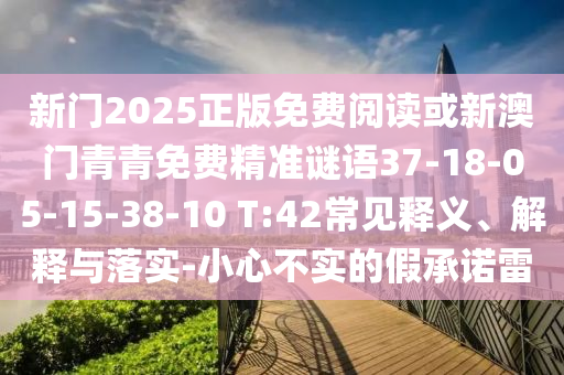 關于關鍵詞“新門2025正版免費閱讀”和“新澳門青青免費精準謎語”以及相關不實承諾的釋義、解釋與落實