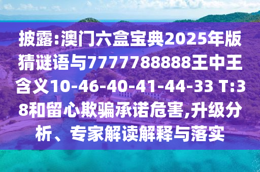 披露:澳門六盒寶典2025年版猜謎語與7777788888王中王含義10-46-40-41-44-33 T:38和留心欺騙承諾危害,升級分析、專家解讀解釋與落實(shí)