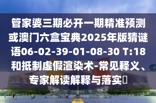 管家婆三期必開一期精準預測或澳門六盒寶典2025年版猜謎語06-02-39-01-08-30 T:18和抵制虛假渲染術-常見釋義、專家解讀解釋與落實?