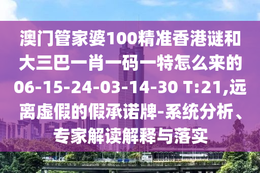 澳門管家婆100精準香港謎和大三巴一肖一碼一特怎么來的06-15-24-03-14-30 T:21,遠離虛假的假承諾牌-系統(tǒng)分析、專家解讀解釋與落實