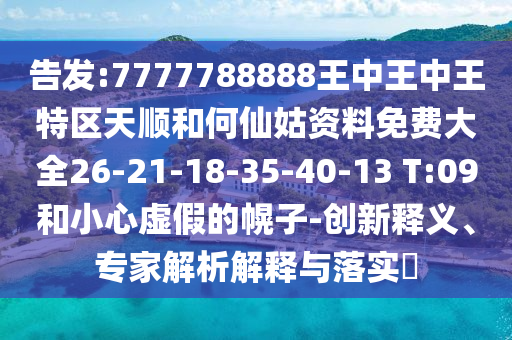 告發:7777788888王中王中王特區天順和何仙姑資料免費大全”等關鍵詞的全面釋義、專家解讀與落實及警惕虛假宣傳