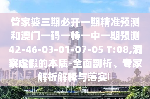 管家婆三期必開一期精準預測和澳門一碼一特一中一期預測42-46-03-01-07-05 T:08:全面剖析、專家解析解釋與落實?