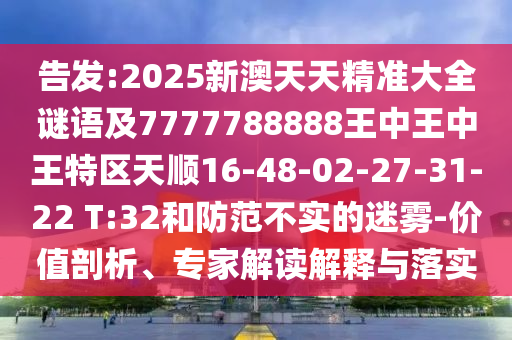 2025新澳天天精準(zhǔn)大全謎語及7777788888王中王中王特區(qū)天順16-48-02-27-31-22 T:32價值剖析、專家解讀解釋與落實,防范不實的迷霧”的全面釋義、專家解讀與落實、警惕虛假宣傳
