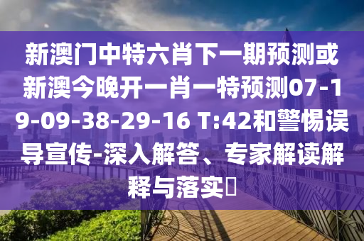 新澳門中特六肖下一期預測或新澳今晚開一肖一特預測07-19-09-38-29-16 T:42:深入解答、專家解讀解釋與落實?