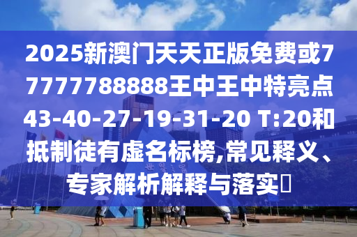 2025新澳門天天正版免費(fèi)或77777788888王中王中特亮點(diǎn)43-40-27-19-31-20 T:20:常見釋義、專家解析解釋與落實(shí)?