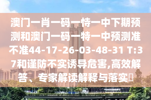 澳門一肖一碼一恃一中下期預測和澳門一碼一特一中預測準不準44-17-26-03-48-31 T:37和謹防不實誘導危害,高效解答、專家解讀解釋與落實?