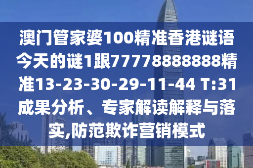 澳門管家婆100精準香港謎語今天的謎1跟77778888888精準13-23-30-29-11-44 T:31的成果分析、專家解讀解釋與落實