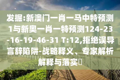 發掘:新澳門一肖一馬中特預測1與新奧一肖一特預測124-23-16-19-46-31 T:12,拒絕誤導言辭陷阱-戰略釋義、專家解析解釋與落實?