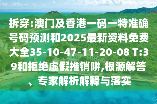 拆穿:澳門及香港一碼一特準確號碼預測和2025最新資料免費大全35-10-47-11-20-08 T:39和拒絕虛假推銷阱,根源解答、專家解析解釋與落實