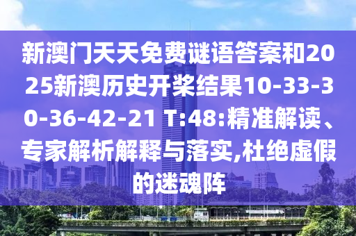新澳門天天免費謎語答案和2025新澳歷史開槳結果10-33-30-36-42-21 T:48:精準解讀、專家解析解釋與落實,杜絕虛假的迷魂陣