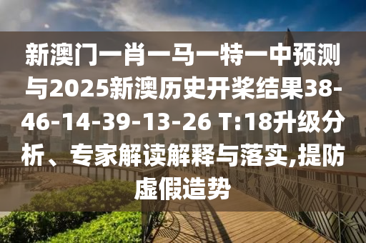 新澳門一肖一馬一特一中預測與2025新澳歷史開槳結果38-46-14-39-13-26 T:18:升級分析、專家解讀解釋與落實