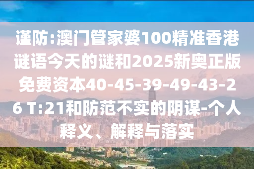 謹(jǐn)防:澳門管家婆100精準(zhǔn)香港謎語今天的謎和2025新奧正版免費(fèi)資本40-45-39-49-43-26 T:21和防范不實(shí)的陰謀-個(gè)人釋義、解釋與落實(shí)